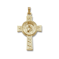 14 KT YG SOLID CROSS WITH ST PATRICK MEDAL ON CENTER