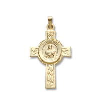 14 KT YG SOLID CROSS WITH ST THERESA MEDAL ON THE CENTER