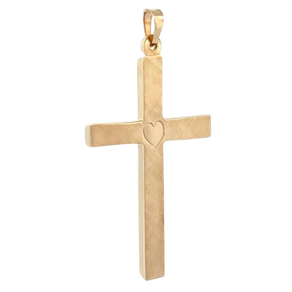 14KT YG HOLLOW FLORENTINE CROSS WITH HEART CENTER DESIGN