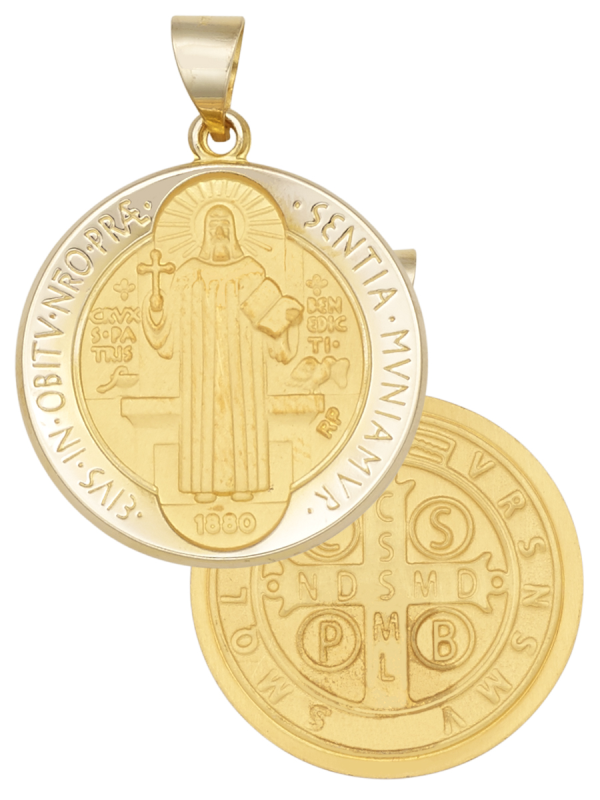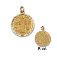 14K Yellow Gold Round Solid Saint Benedict Medal