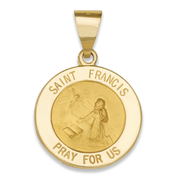 14K Yellow Gold Round Hollow Saint Francis Medal