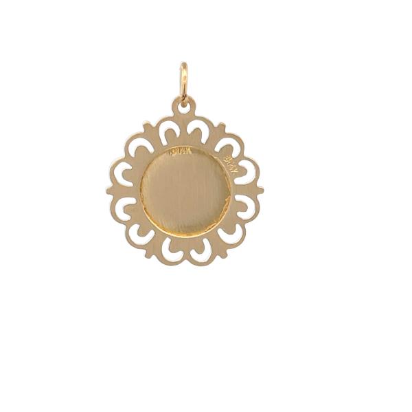 14K Yellow Gold Round Solid Baptism Medal inside 14K Yellow Gold Pierced Frame