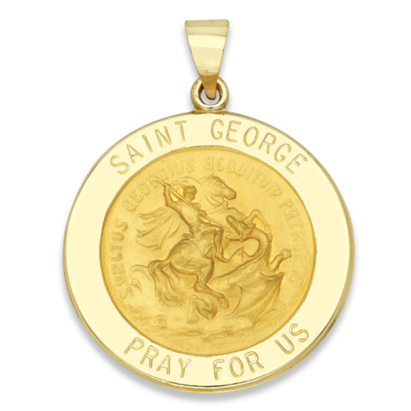 14K Yellow Gold Round Hollow Saint George Medal