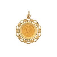 14K Yellow Gold Round Solid Lord Jesus Medal inside 14K Yellow Gold Pierced Frame