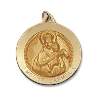 14K Yellow Gold Round Hollow Our Lady of Mount Carmel Medal