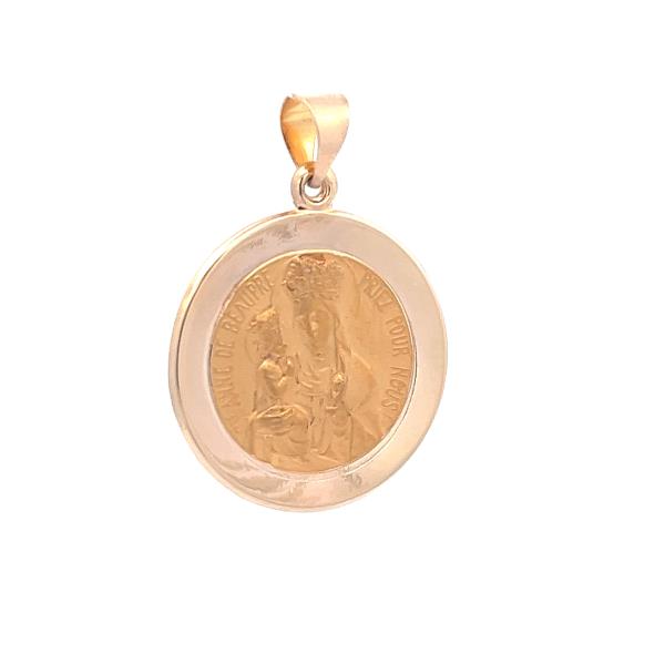 14K Yellow Gold Round Hollow Saint Anne de Beaupre Medal