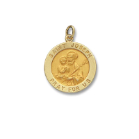 14K Yellow Gold Oval Hollow Saint Joseph Medal