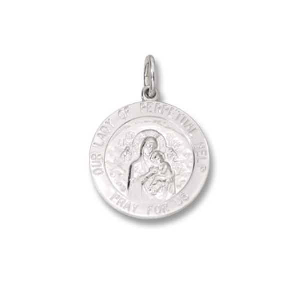 925 Sterling Silver Bright Plated Oval Solid Our Lady of Perpetual Help Medal