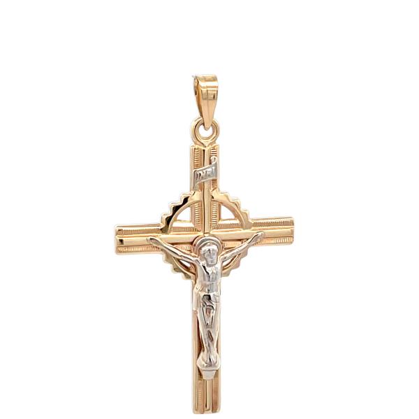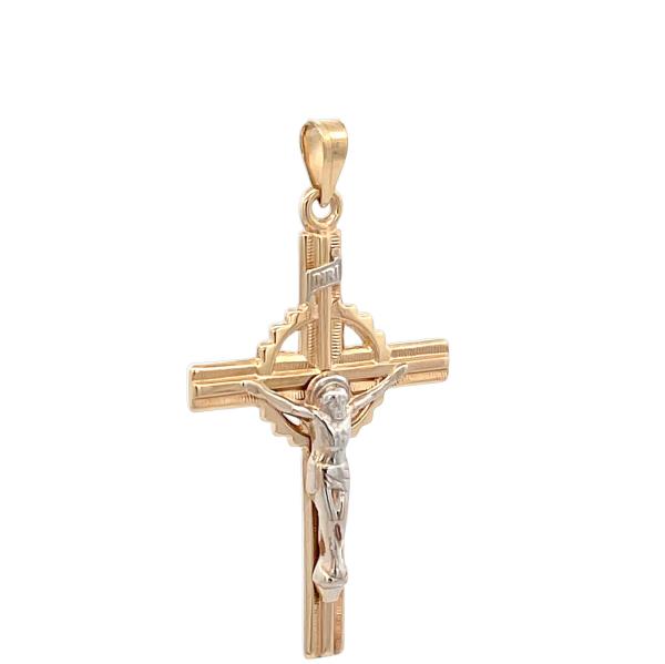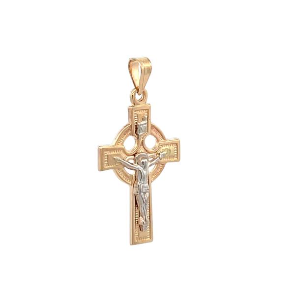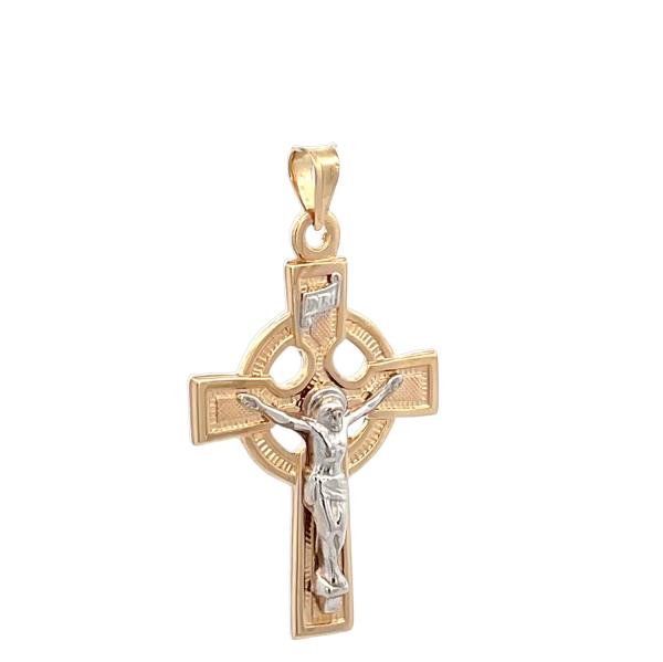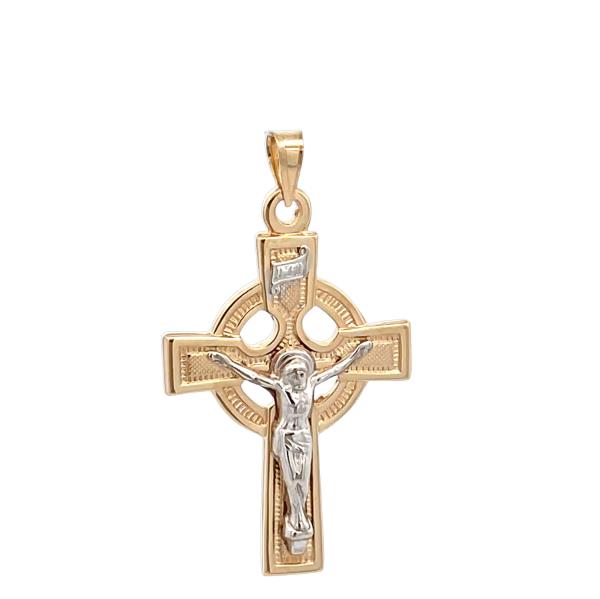 14KT TT SOLID CELTIC CRUCIFIX WITH BARK DESIGN