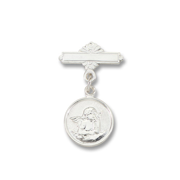 [productDescription] => 925 Sterling Silver Bright Plated Solid Baby Pin Angel Round Medal
