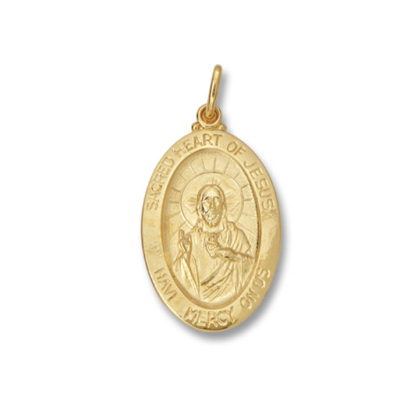 24 KT GOLD PLATED OVAL SACRED HEART OF JESUS MEDAL