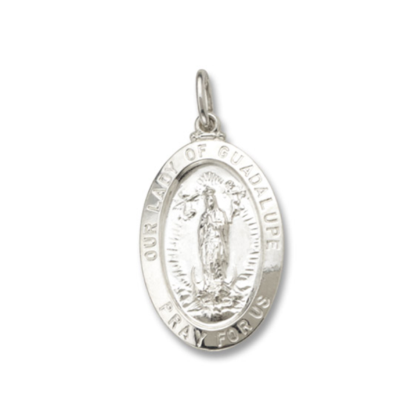 14K Yellow Gold Oval Solid Our Lady of Guadalupe Medal