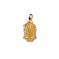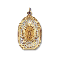 14K Yellow Gold Oval Solid Our Lady of Guadalupe Medal inside 14K Yellow Gold Pierced Frame