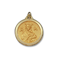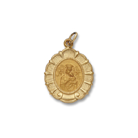 14K Yellow Gold Oval Solid Scalloped Our Lady of Perpetual Help Medal
