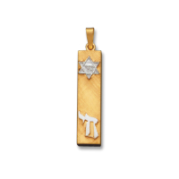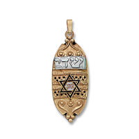 14K Yellow Gold Hollow Florentine Mezuzah with 14K White Gold Star of David and Commandments