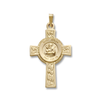 14 KT YG SOLID CROSS WITH ST JOSPEH MEDAL ON CENTER