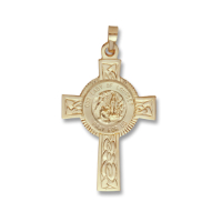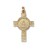 14 KT YG SOLID CROSS WITH OUR LADY OF LOURDES MEDAL ON CENTER