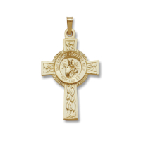 14KT YG SOLID CROSS WITH OUR LADY OF PERPETUAL HELP MEDAL ON CENTER
