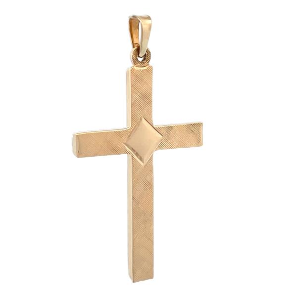 14KT YG HOLLOW FLORENTINE CROSS WITH DIAMOND CENTER DESIGN
