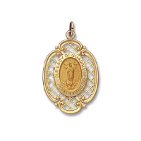 14K Yellow Gold Oval Solid Our Lady of Guadalupe Medal