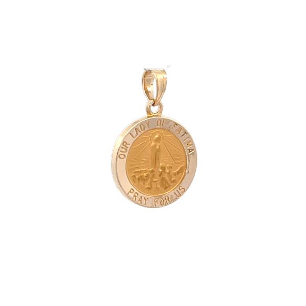 14K Yellow Gold Round Hollow Our Lady of Fatima Medal