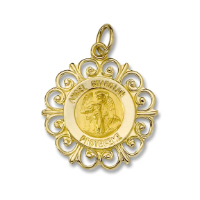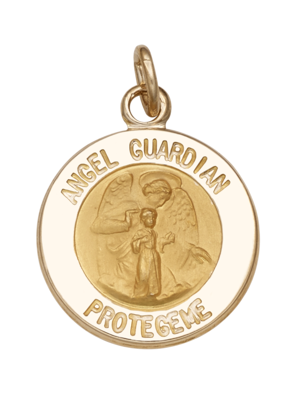 14K Yellow Gold Round Solid Guardian Angel Medal