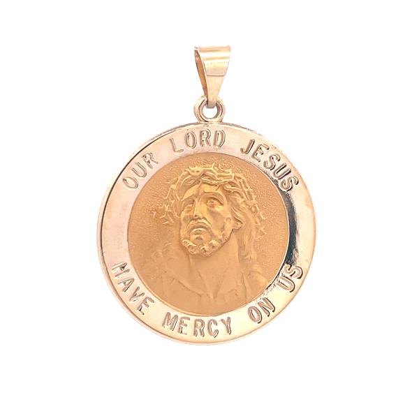 14K Yellow Gold Round Hollow Lord Jesus Medal