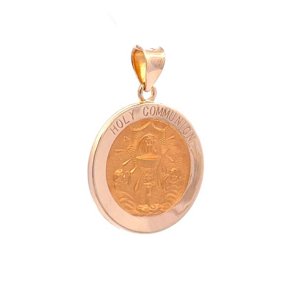 14K Yellow Gold Round Hollow Holy Communion Medal