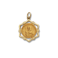 14K Yellow Gold Round Solid Infant Jesus Medal