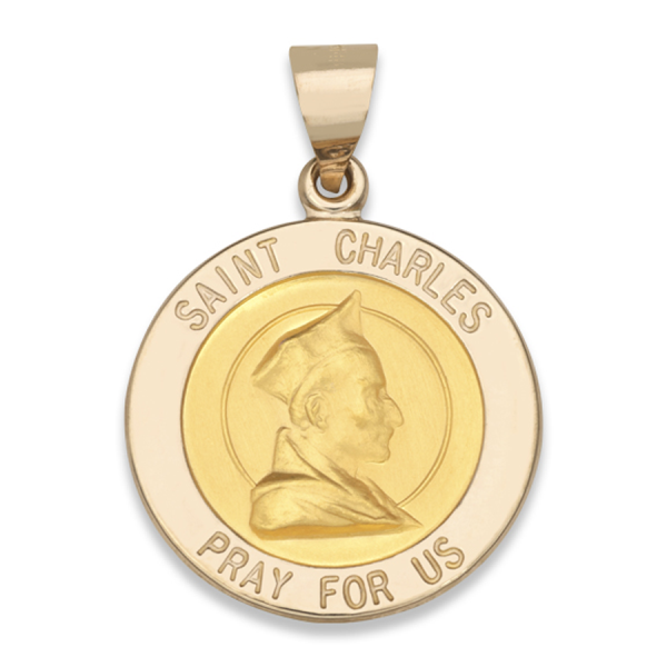 14K Yellow Gold Round Hollow Saint Charles Medal