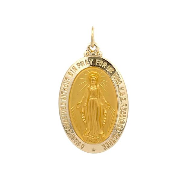 14K Yellow Gold Oval Solid Two-Sided Miraculous Shield Medal