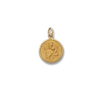 14K Yellow Gold Round Solid Scalloped Our Lady of Perpetual Help Medal