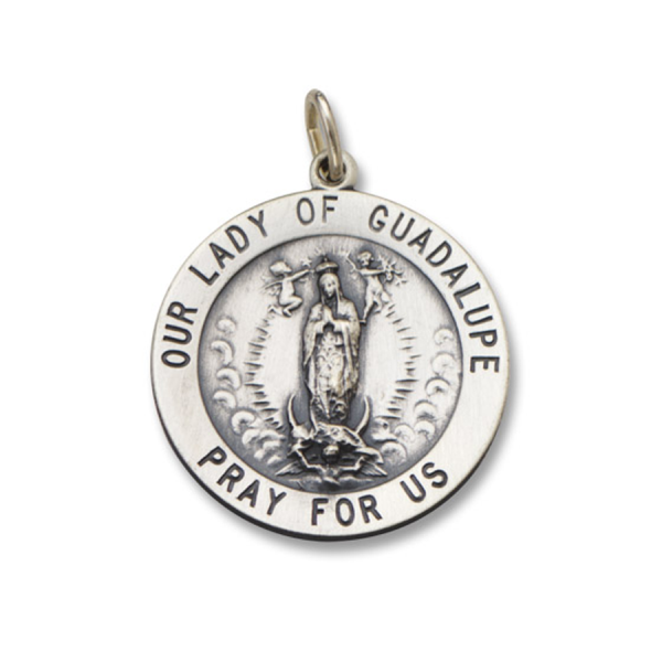 925 Sterling Silver Antiqued Style Round Solid Our Lady of Guadalupe Medal