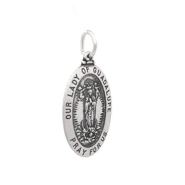 925 Sterling Silver Antiqued Style Oval Solid Our Lady of Guadalupe Medal