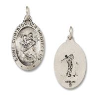 925 Sterling Silver Antiqued Style Oval Solid Saint Christopher Medal