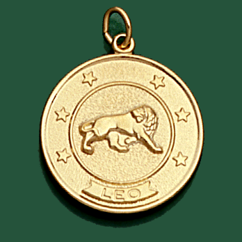 14K Yellow Gold Round Solid Leo Medal