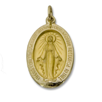 14K White Gold Oval Solid Two-Sided Miraculous Medal