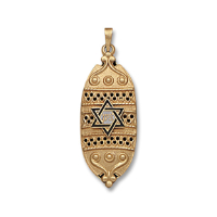 14K Yellow Gold Hollow Mezuzah with 14K White Gold Chai