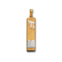 14K Yellow Gold Hollow Mezuzah with 14K White Gold Star of David and Commandments