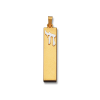 14K Yellow Gold Hollow Mezuzah with 14K White Gold Star of David and Commandments