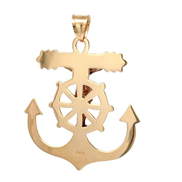 14K Yellow Gold Solid Anchor Charm with 14K White Gold Crucifix